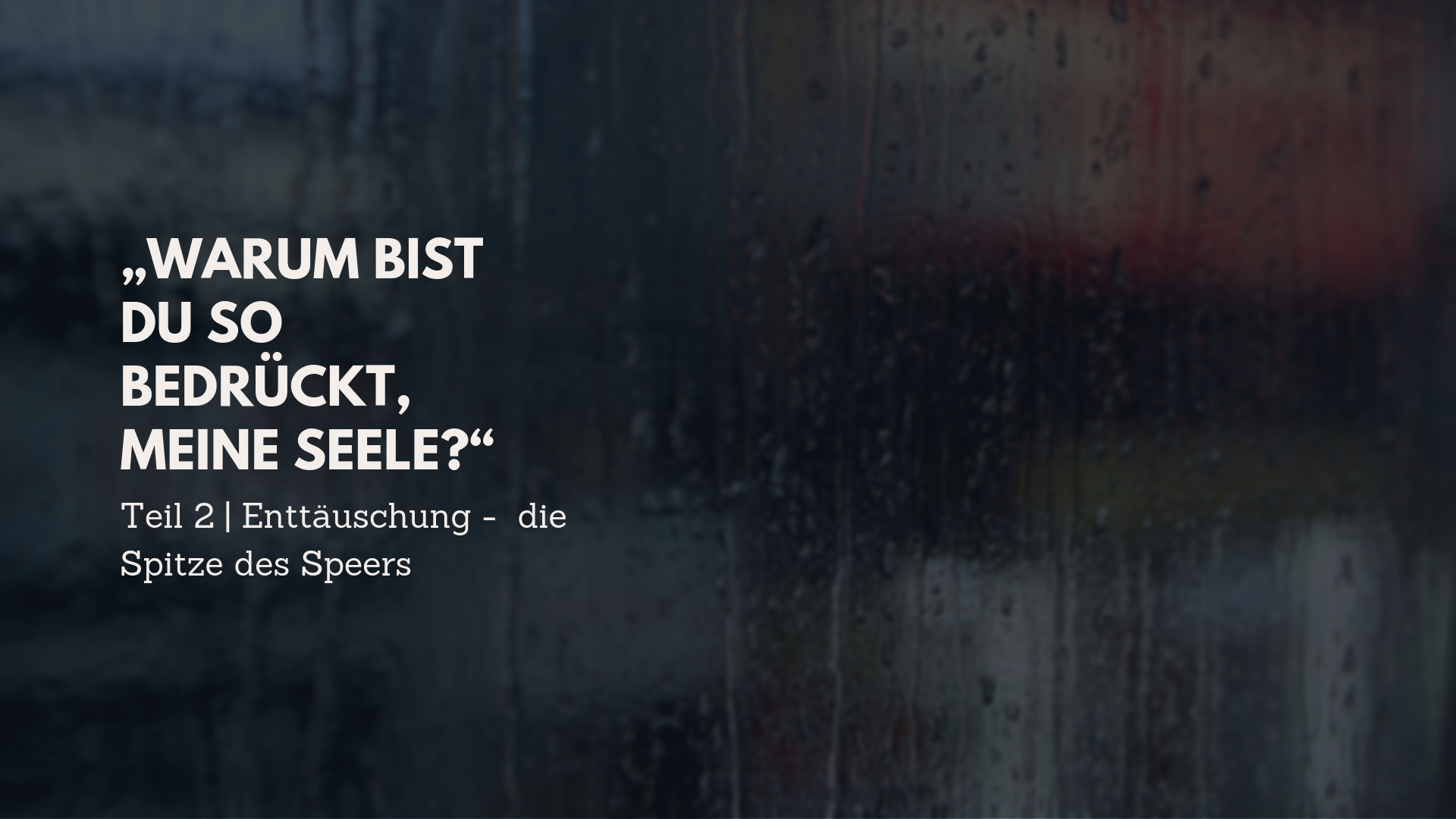 Wie sieht es bei dir aus? Bist du schon einmal enttäuscht worden? Wenn du auf Gott hörst und Seine Führung suchst, dann hängt die Heilung deiner Wunden, die durch Enttäuschungen verursacht wurden, davon ab, dass du alles im Glauben als Teil der Erneuerung des Heiligen Geistes (Tit.3,5) annimmst und dich von seiner Treue tragen lässt (Ps. 54,5-6).